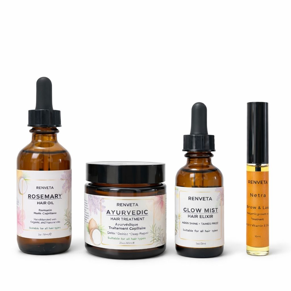 The Essential Hair Ritual is a comprehensive four-step system rooted in Ayurvedic principles.
